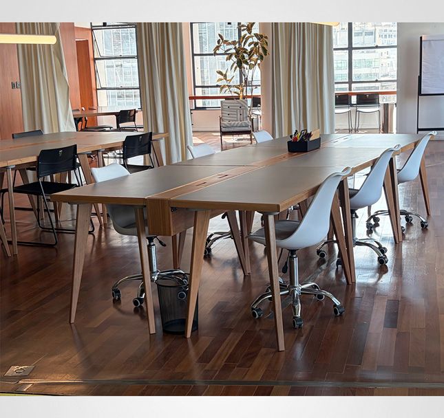A Mesa Quilha tem um desenho limpo e tampo com dimensões 120x60 é ideal para um espaço de trabalho, onde nominamos Módulo Mesa de Trabalho.