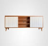 | Materiais | Pés Taco e ripados em madeira maciça e caixa em compensado de madeira natural Jequitibá. |
